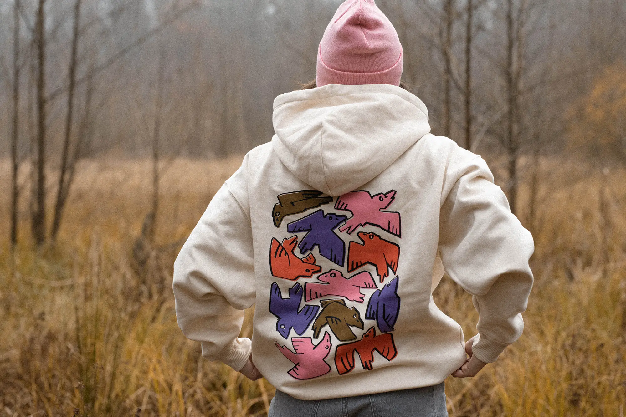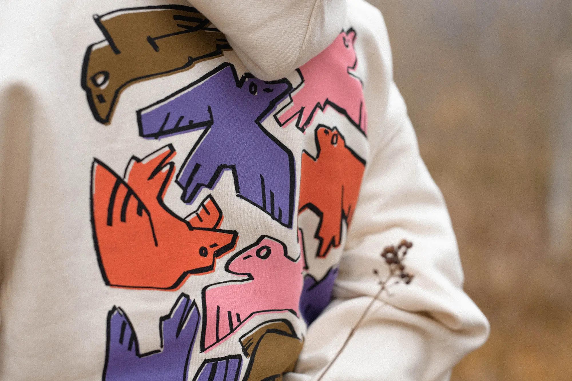Oversized unisex Hoodie aus Bio-Baumwolle mit knalligem Print.