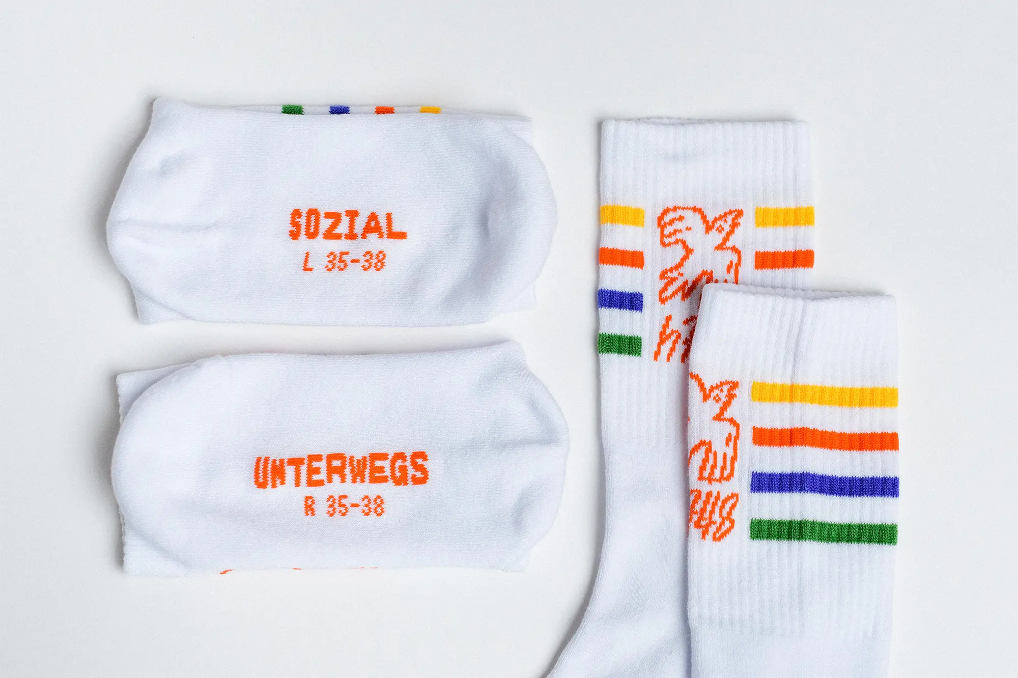 Sozial unterwegs mit der sozialen Sportsocke: sieht flott aus und pflegt den Sportsgeist. Aus hochwertigen Garnen wird das Motiv bereits bei der Produktion in die Socken gestrickt. Sitzt. Passt. Peppt jedes Outfit auf.